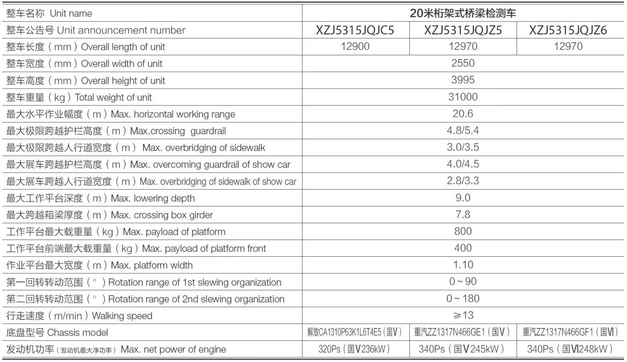 20米桁架式桥梁检测车
